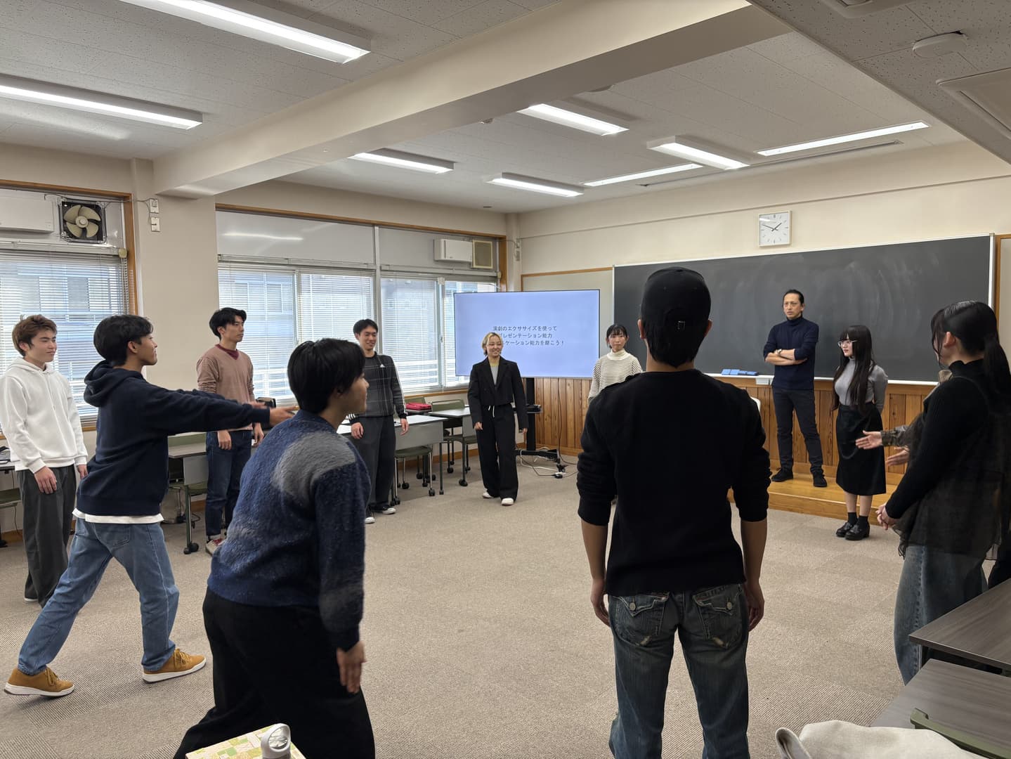 | 2.演劇的トレーニング | 姿勢・呼吸・声の使い方 相手を惹きつける間・視線・表情 |